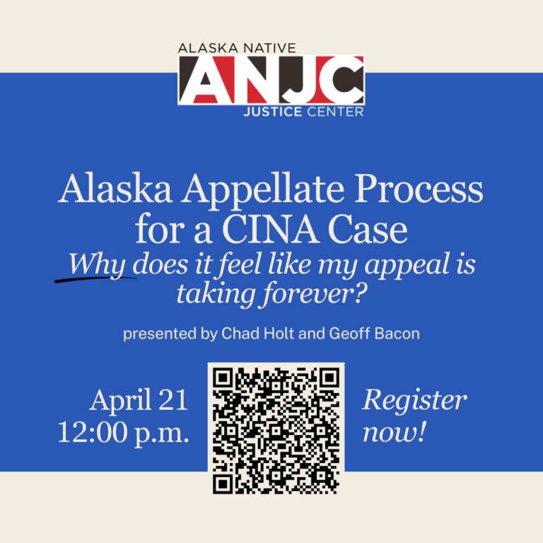 “Why does it feel like my appeal is taking forever?” Join Alaska Native Justice Center in reviewing how the Alaska Supreme Court processes Child in Need of Aid (CINA) case appeals and why it may feel like the court is taking too long to issue its decision.